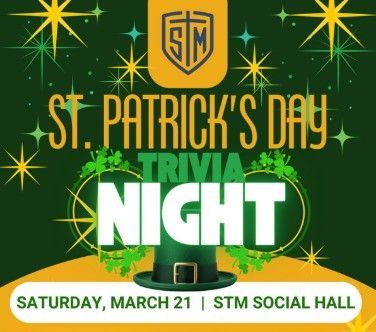 Join the young adult team at St. Patrick's Day Trivia Night on Saturday, March 21st in the Social Hall at St. Thomas More. The trivia night is a fundraiser for St. Thomas More Catholic School. Happy Hour begins at 6:00pm with team check-ins completed by 7:15pm. Individual tickets are $25 and can be purchased through this link. List "Young Adults" as your team name.