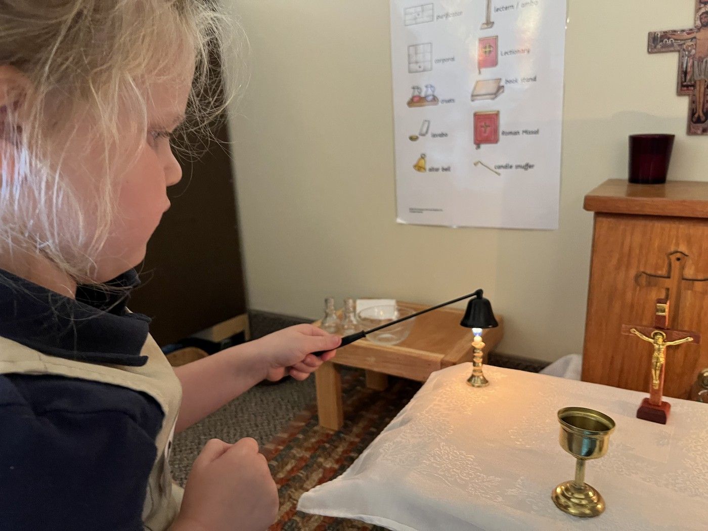Catechesis of the Good Shepherd is a hands-on, Montessori-based approach to faith formation for children. Rooted in Scripture and the liturgy of the Church, CGS invites children into a prayerful relationship with God through work, silence, and wonder. At the heart of CGS is the belief that children already have a deep connection with God. In a carefully prepared space called the Atrium, children work with beautiful, child-sized materials that help them reflect on Scripture stories, the life of Jesus, and the meaning of the Mass. Rather than being “taught,” children are guided to discover and respond to God’s love in their own way.